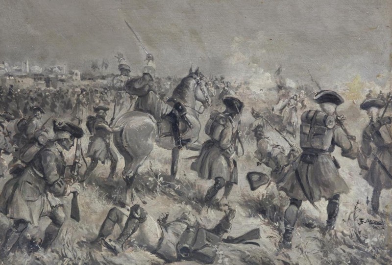 Juego de tres grisallas con escenas militares