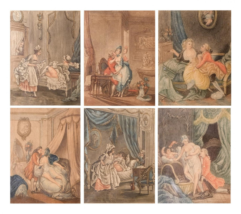 Lote compuesto por seis grabados con escenas eróticas