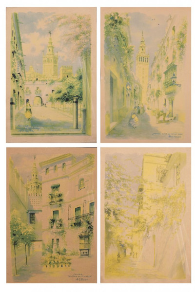 Lote formado por cuatro postales de la ciudad de Sevilla. S. XX.