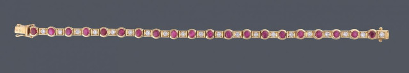 Pulsera en oro amarillo de 18 k rubíes talla oval 4,90 ct y diamantes talla brillante 1,35 ct. Peso total 20,50 g