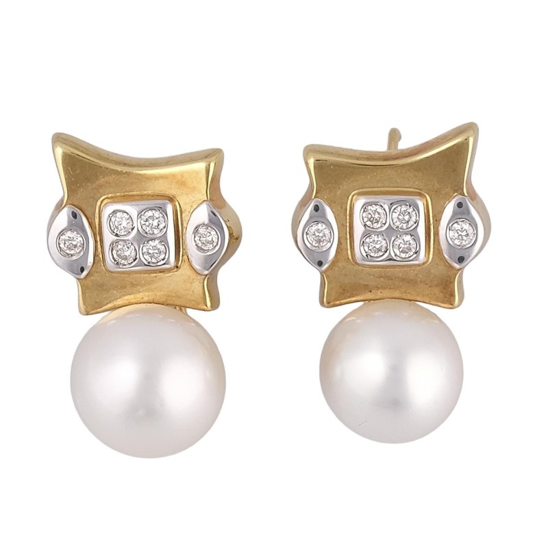 Pendientes en oro blanco con diamante de 0,12ct, perlas australianas de 11,5mm. Cierre de gancho. Peso total de las piezas: 5,82g