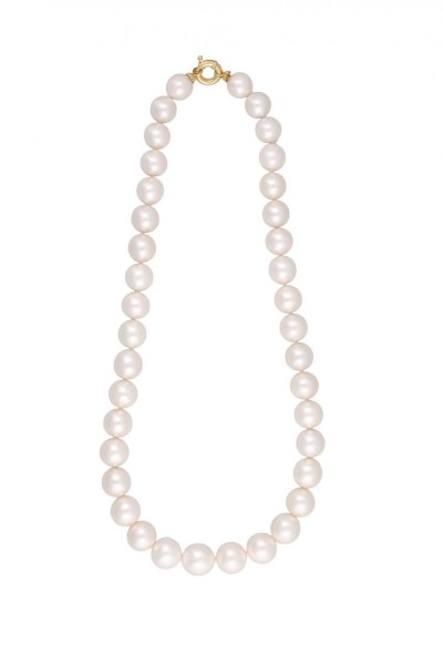 Collar de perlas en disminución de 14 a 11mm con cierre de reasa marinera en oro de 18k. Largo: 48cm