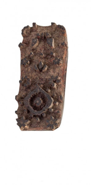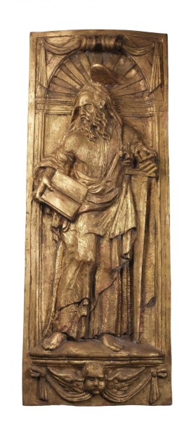 Fragmento de carro en madera tallada y policromada representando una escena de batalla. Sicilia, S. XIX