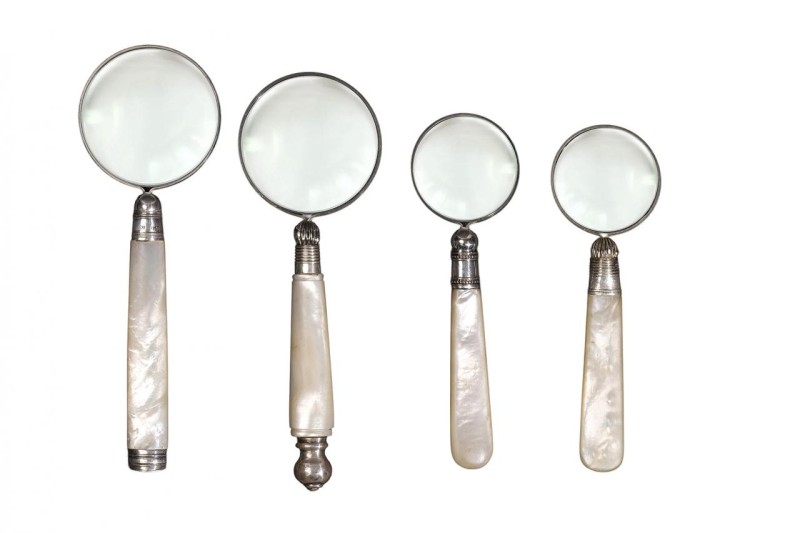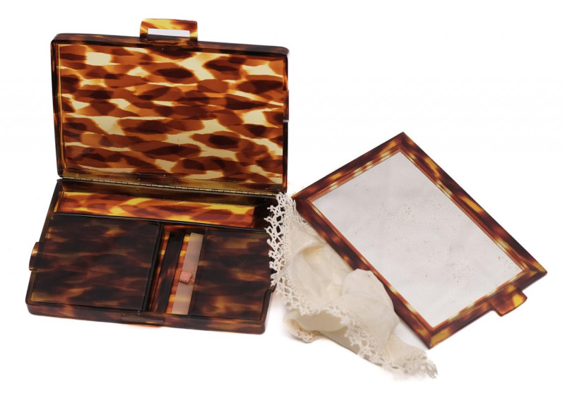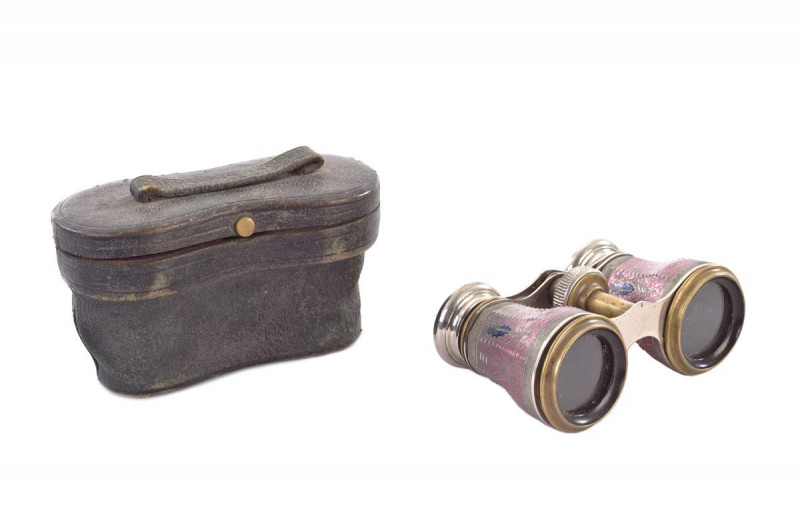 Antiguos binoculares del S. XX, decorados con esmalte sobre metal. Van en su estuche de cuero.