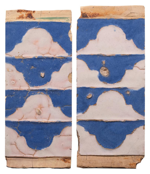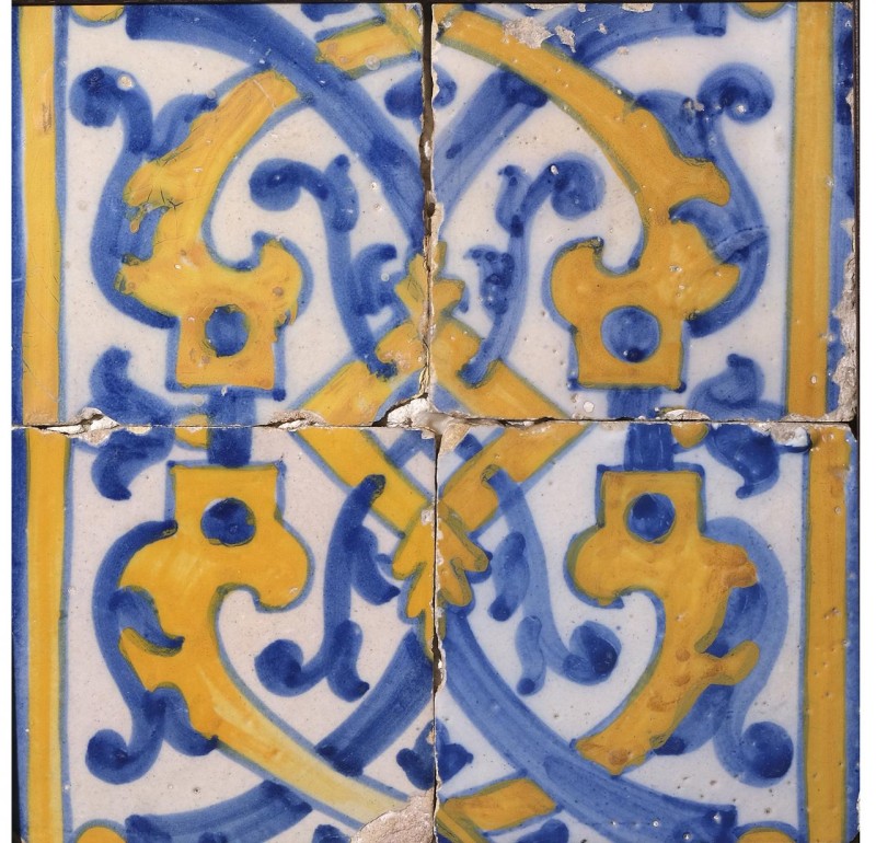 Pareja de azulejos por tabla en cerámica esmaltada de Triana en azul y blanco realizado mediante la técnica de arista. Sevilla, S. XVI