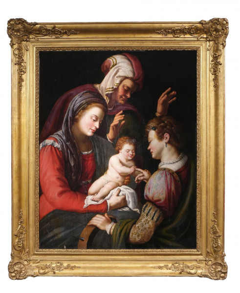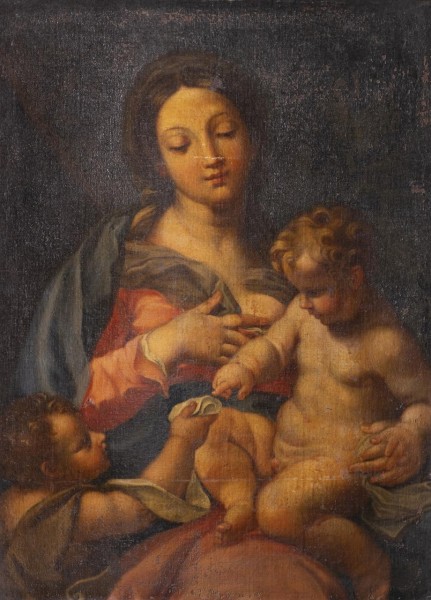 Niño Jesús con la Virgen María y San Francisco de Asís