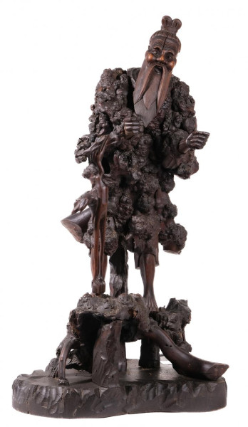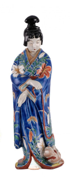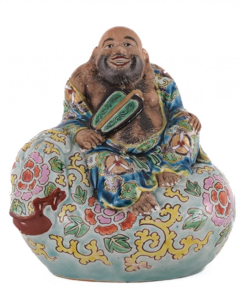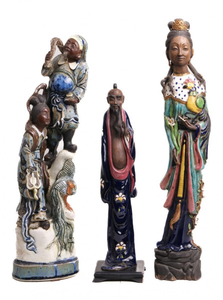 Lote formado por tres figuras orientales en cerámica vidriada. Primera mitad S. XX.