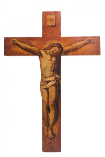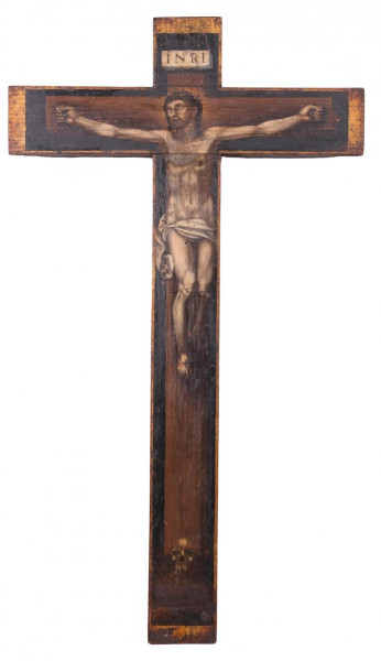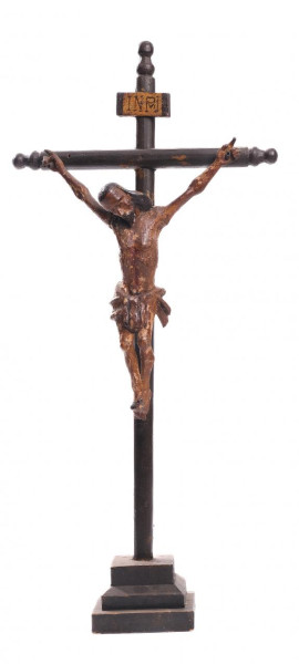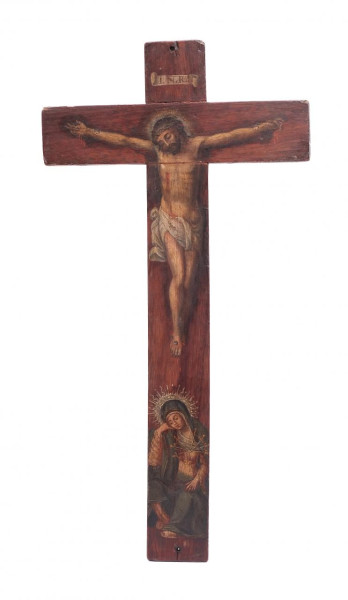 Costurero en madera en decoración policromada de guirnaldas de flores y medallón central con retrato femenino. 3º tercio del S. XIX