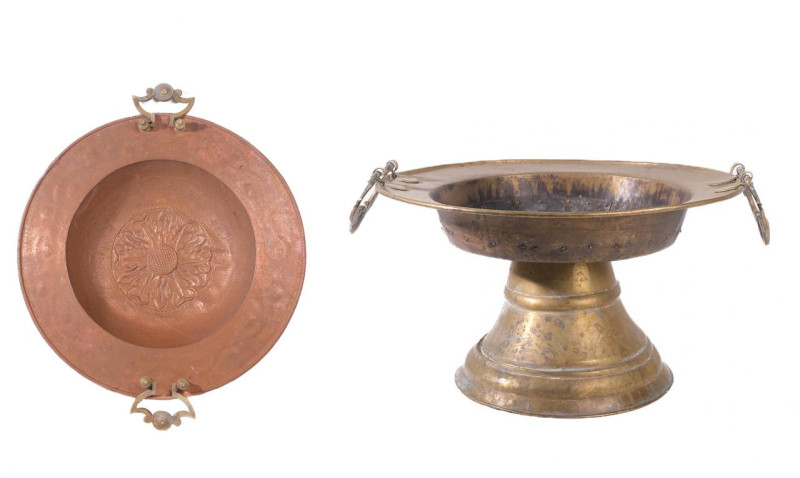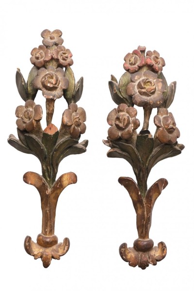 Pareja de remates en madera tallada y policromada en forma de ramilletes. España, S. XX