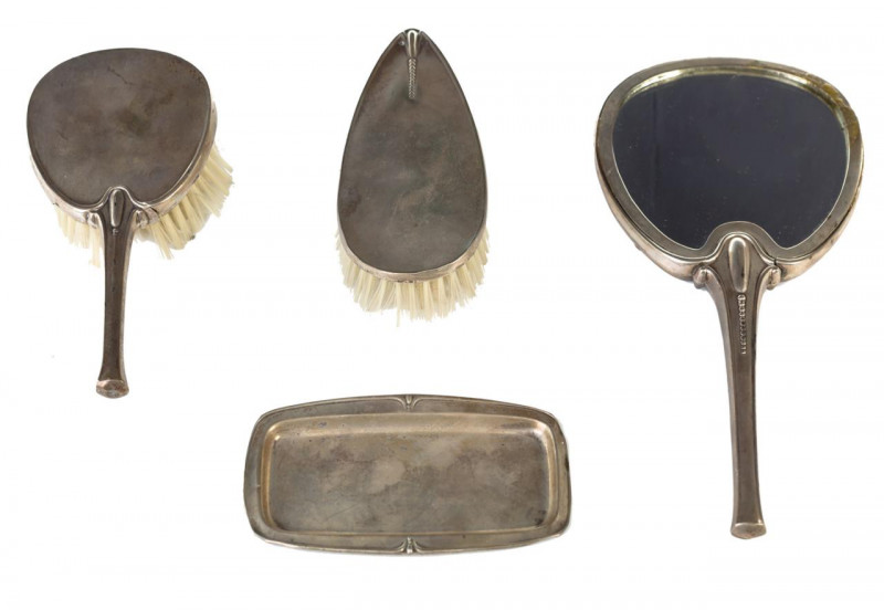 Juego de tocador en metal plateado. S. XX.