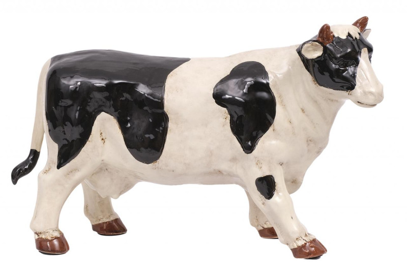 Figura de vaca en porcelana esmaltada. S. XX.