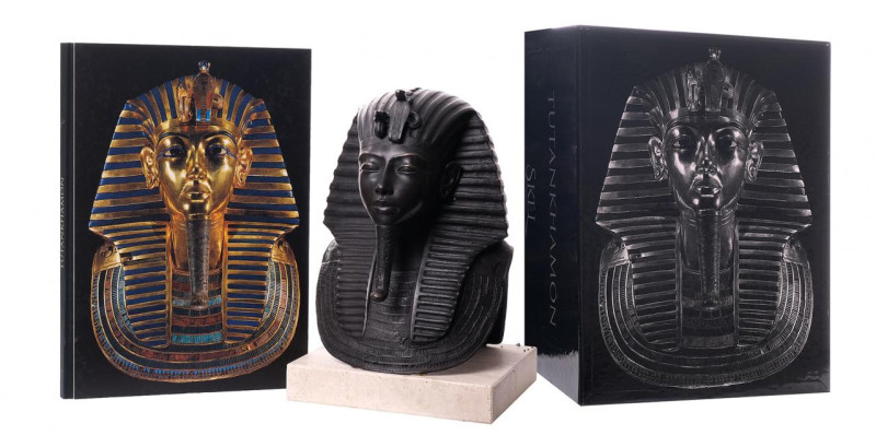 Busto de Tutankhamon y libro