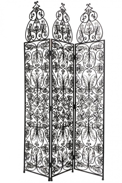 Biombo de tres hojas realizado en hierro forjado pintado en negro. España, S. XX