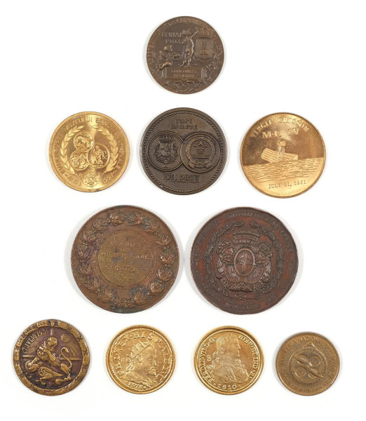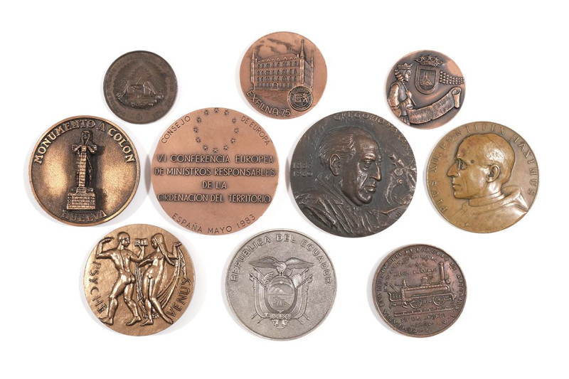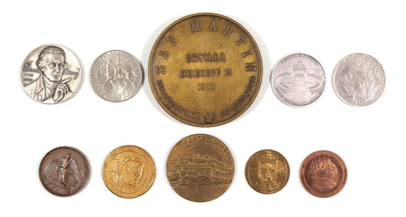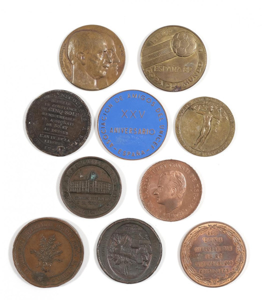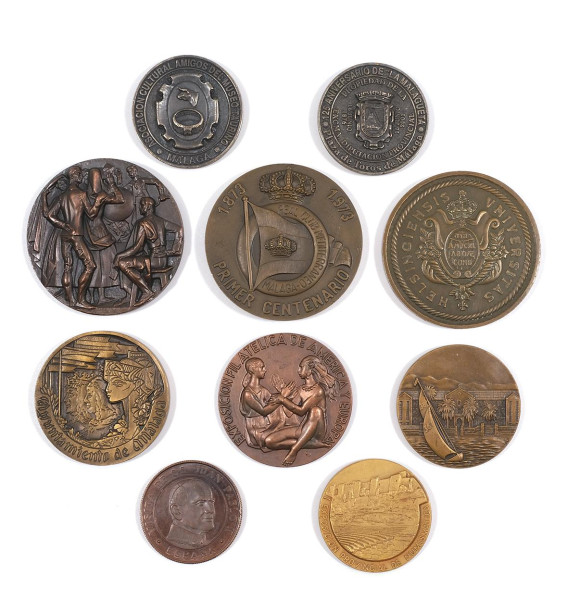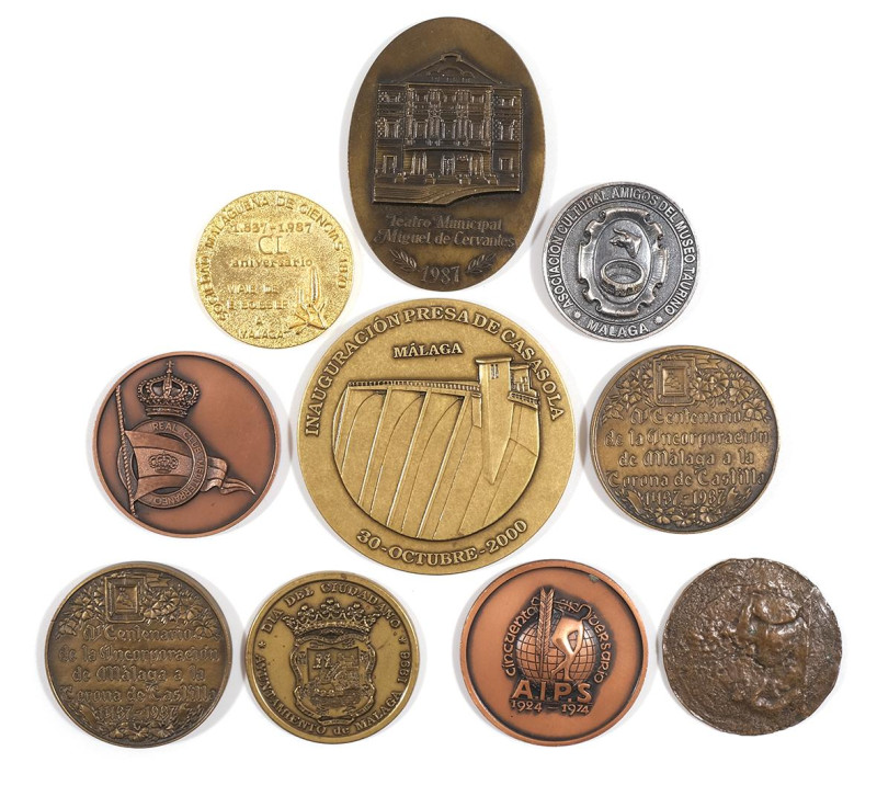 Lote formado por diez medallas conmemorativas relacionadas con la ciudad de Málaga.