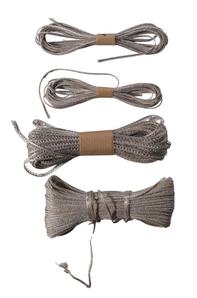 Cuatro madejas de "soutaches" en hilo de plata de diferentes formas. Francia, 2ª mitad del S. XX