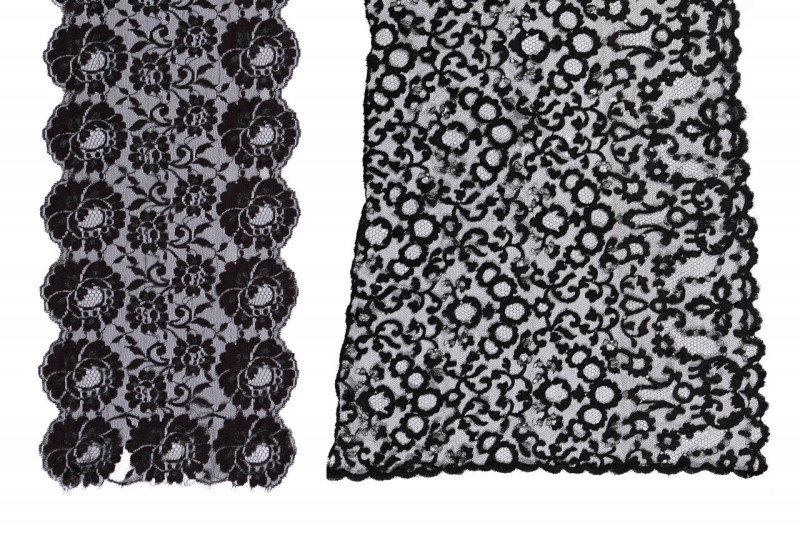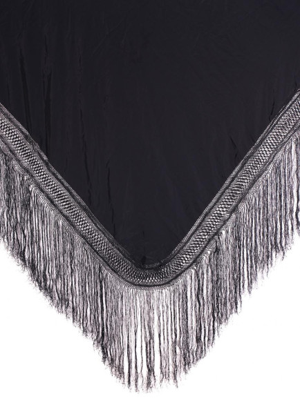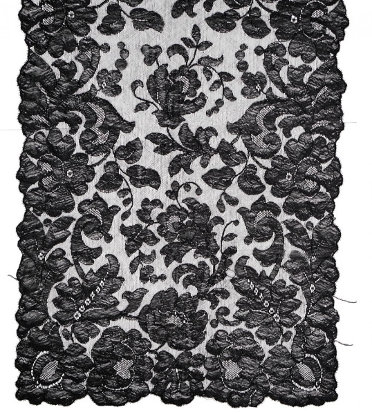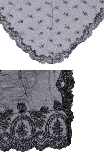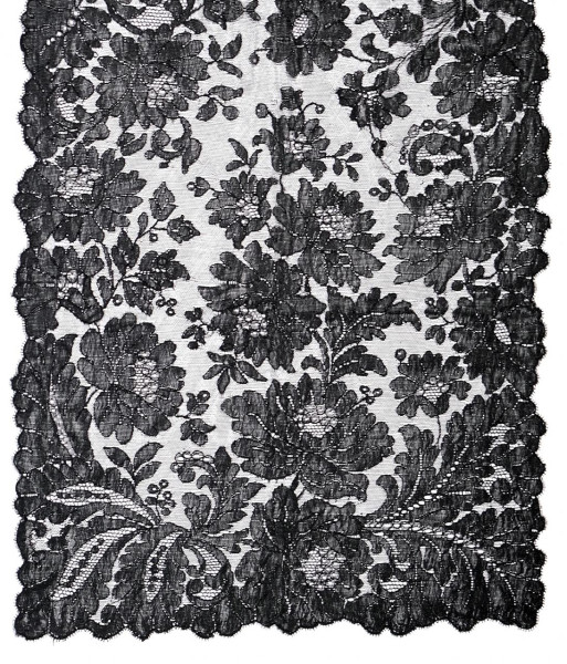 Mantilla negra tipo "velo de toalla" en seda con encaje de blonda. Probablemente Francia, mediados S. XX.