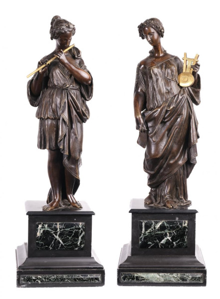 Pareja de figuras femeninas con una flauta y una lira. Francia, S. XIX
