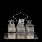 Conjunto de 6 frascos en cristal, sobre convoy bañado en plata, con marca de Sheffield. Adkin Brothers. Ff. XIX-Ppios. XX. Inglaterra.