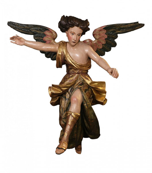 A mediados del siglo XVIII, uno de los principales imagineros de la escuela sevillana era Pedro Duque Cornejo, quien mantuvo un estilo en el que se fusionaban las tendencias más tradicionales de la talla barroca andaluza con toques cada vez más cercana al espíritu rococó que impregnó lentamente todas las artes durante el reinado de Felipe V y de su hijo Fernando VI. Sus imágenes, y éste es buen ejemplo, se caracterizan por el ligero movimiento de paños, dinámicas y de ejecución sofisticada y trabajo minucioso. En esta escultura de bulto redondo encontramos gran similitud con los dos ángeles lampadarios datados aproximadamente hacia 1740 que se encuentran en el Altar Mayor de la Iglesia de San Luis de los Franceses, dentro del Conjunto Monumental del mismo nombre, que fueron restaurados en el año 2017 por la Diputación de Sevilla, a través de su Área de Cultura y Ciudadanía. Existen importantes semejanzas entre ambos trabajos tanto en la calidad técnica y artística así como en la fisonomía de los rostros y dinamismo de las figuras.