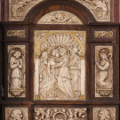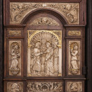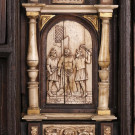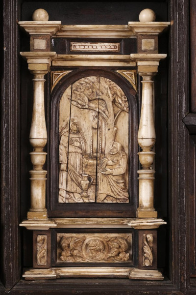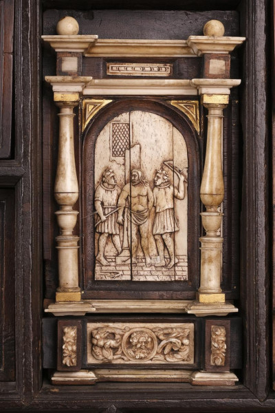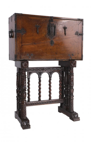 Bargueño en madera de nogal con aplicaciones en hueso. España, S. XVII.