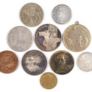 Lote formado por seis medallas conmemorativas y cuatro monedas.