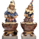 Pareja de figuras de arlequines con tambor en cerámica de mayólica. S. XX.