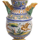 Jarrón en cerámica esmaltada de Triana de la casa Mensaque. S. XX, presenta rotura.