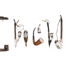 Colección de siete pipas holandesas en cerámica esmaltada decoradas por motivos alpinos. S. XX.