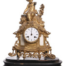 Reloj de sobremesa en calamina dorada rematado por un putto. Fns. S. XX