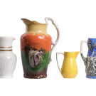 Lote formado por tres jarras en cerámica esmaltada y una en opalina blanca. S. XX.