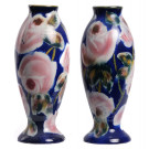 Lote formado por dos jarrones en cerámica esmañtada con motivos florales. S. XX.