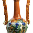 Jarrón en cerámica esmaltada tipo "sancai" con asas en forma de dragón. China, S. XX.