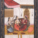 Seda pintada con escena cortesana de galanteo. India, S. XX