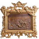 Relieve con venados y marco en bronce dorado con decoración de hojas de acanto y guirnaldas de flores. Fns. S. XIX