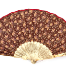 Abanico con varillaje en hueso calado, país en tela decorada de flores; reverso liso en color rojo. Pp. S. XX