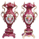 Pareja de jarrones isabelinos en porcelana esmaltada con decoración floral en el centro. España, 3º cuarto del S. XIX