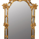 Espejo con marco en madera dorada y tallada en estilo rococó rematado por copete con decoración de hojas de acanto y flores. España. Fns. S. XIX