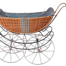 Carrito de juguete para muñeca en mimbre con armazón de hierro. H. 1900