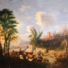 Paisaje con personajes y ganado