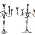 Pareja de candelabros de cinco luces cada uno en metal plateado. S. XX