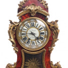 Reloj cartel de sobremesa de estilo Luis XV con caja en carey y guarniciones en bronce dorado de hojas de acanto y remate superior de amorcillo alado. Francia, último tercio del S. XIX