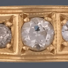 Sortija en oro amarillo de 18k con tresillo de diamantes en talla brillante antigua europea de 0,55ct, engaste en cuadrillón. Peso total de la pieza: 6,30g