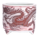 Tintero o bote para pinceles en porcelana esmaltada en marrón rojizo con decoración de dragón. China, probablemente dinastía Ming, S. XVII