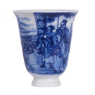 Pequeña taza para té en porcelana esmaltada con personajes en azul sobre fondo blanco. China, S. XVIII - S. XIX