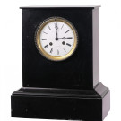 Reloj de sobremesa en mármol negro con esfera en porcelana blanca y numeración romana en negro. Francia, S. XIX