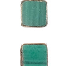 Pendientes en forma de cuadrado pequeño en oro de 18k y lámina de malaquita. Cierre a presión. Peso total de las piezas: 0,5g.