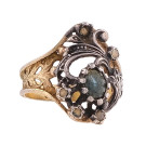 Sortija calada en plata sobredorada con vidrio strass. Peso total de la pieza: 3,3g.