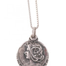 Guardapelo modernista en plata con espejo interior. Largo total: 33cm. Peso total de las piezas: 13,19g.