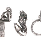 Anillos en plata con diferentes formas: sirena, minotauro, figura femenina frente a un espejo. Peso total de las piezas: 30,90g.