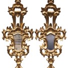 Pareja de cornucopias con marco en madera tallada y dorada con decoración de hojas de acanto y rocalla. España, Fns. S. XIX